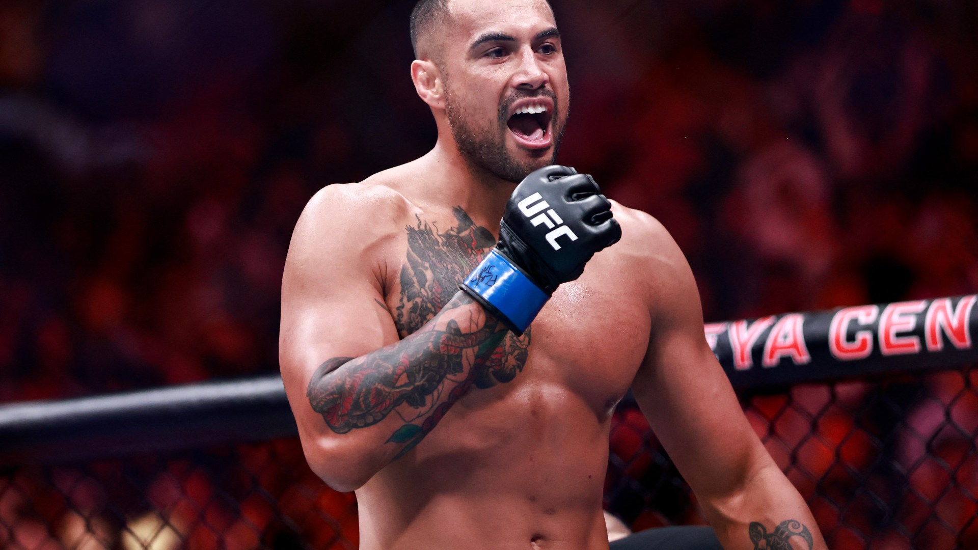 Josh Hokit (9-0-0) and Curtis Blaydes (19-6-0) battered each other in the slugfest of the night, with Trump excitedly watching the heavyweights as fans chanted “This is awesome!” while the fighters bloodied each other’s faces. Hokit won by unanimous decision (29-28, 29-28, 29-28).