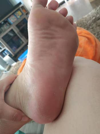 Promising review: "Holy moly — BABY SOFT FEET. I wish I had taken before and after pics! I followed the instructions and everything worked better than I expected. I sat on the side of the tub and soaked my feet (while reading and sipping wine). I used a pumice stone on my feet while they were soft, then I put on a pair of gloves and generously applied the gel, timed it for three minutes, then used the pumice stone after I rinsed and washed. I had baby soft heels — better than getting a pedi. I will forever use this product. My only regret is not having found it sooner. Btw, I’m a 65-year-old granny, and it was super easy." —Caribare