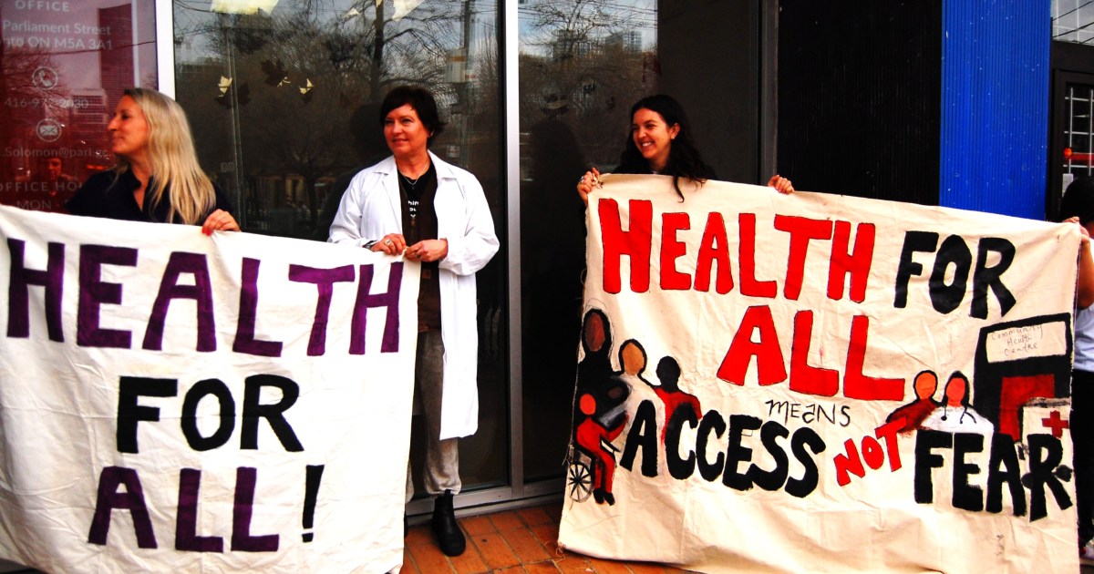 Health workers and rights advocates say co-payments, set to take effect on May 1, amount to 'de facto denial of care'. Save Share Toronto, Canada – Rallies have been held across Canada urging the government to reverse planned cuts to a healthcare programme for refugees and asylum seekers. Dozens of people demonstrated in Toronto on Tuesday as part of a national day of action against cuts to the Interim Federal Health Program (IFHP), which are set to come into effect on May 1. Critics say the curbs put vulnerable people at risk and will lead to higher costs down the line. “We want to make sure that we have a universal healthcare system, and we also don’t want a system that punches down against vulnerable people and migrants,” Dr Ritika Goel told Al Jazeera at the protest in downtown Toronto. “We want to support a system that provides care to everyone,” she said. The Canadian government announced in late January that it would be making changes to the IFHP, which provides basic health coverage to refugees, asylum claimants, and others not covered by other healthcare programmes in Canada. As of next month, people receiving IFHP coverage will have to pay $4 per eligible prescription medication, as well as 30 percent of the cost of supplemental services such as dental and vision care, and counselling. “Introducing co-payments for supplemental health products and services helps manage growing demand, keeping the IFHP sustainable over the long term,” a spokesperson for Immigration, Refugees and Citizenship Canada (IRCC) told Al Jazeera in an email. “This approach will allow the government to continue supporting eligible beneficiaries while keeping the program fair and consistent with other publicly funded health insurance programs that provide supplemental benefits, including those available to many social assistance recipients.” While the new co-payments may appear modest, doctors and refugee rights advocates say they can be prohibitively expensive for newcomers struggling to rebuild their lives in Canada amid soaring costs. “Certainly, it can have the result of preventing or discouraging [people] from seeking healthcare supports and services that they need,” Aisling Bondy, president of the Canadian Association of Refugee Lawyers, said in an interview in late March. That is “very concerning”, Bondy told Al Jazeera, “especially when we’re talking about people who have just arrived in Canada, who are just becoming established, and who are very vulnerable and have experienced physical and psychological trauma”. The cuts come as views towards refugees and migrants in Canada have soured in recent years amid soaring costs of living and an affordable housing shortage. After a rapid increase in arrivals during the COVID-19 pandemic, a poll in October of last year found that more than half of Canadians said they believe the country accepts too many immigrants. And since taking office in March 2025, Canadian Prime Minister Mark Carney has moved to alleviate pressure on a strained immigration system. Carney’s government is drastically cutting down on temporary visas, including for international students and foreign workers. It passed a new law last month that introduced new restrictions on access to asylum, drawing condemnation from rights groups. It is also making massive budget cuts across various departments amid economic uncertainty, and is seeking to slash $60 billion in Canadian dollars ($43.5bn US) in public spending over five years. According to the Office of the Parliamentary Budget Officer, the cost of the IFHP rose from $211 million Canadian dollars ($153m US) in 2020-2021 to $896 million Canadian dollars ($645m US) in 2024-2025 as the number of beneficiaries and cost per beneficiary “increased significantly”. The programme is projected to grow at an average of 11.2 percent annually through 2030, although that is far below the 33.7 percent seen over the past five years, the office said. The IRCC spokesperson told Al Jazeera that the changes to the programme “could result” in $126.8 million in Canadian dollars ($91.95m US) in savings in 2026-2027, and $231.9 million in Canadian dollars ($168.2m US) “onwards”. But Dr Margot Burnell, president of the Canadian Medical Association, has said the changes to the IHRP would likely increase – not reduce – overall costs to the healthcare system. “When patients cannot afford medications or essential supports, preventable conditions worsen and ultimately require emergency or hospital care, increasing both human suffering and system-wide expenditures,” she said in a letter to Canada’s health minister in February. “The new co-payments will also create additional administrative burden for frontline providers, including pharmacists, dentists, optometrists, and physicians, further straining a healthcare system already under pressure,” Burnell said. She also warned that the changes would amount to “a de facto denial of care” for patients living in poverty. Similar arguments were made in 2012, when then-Prime Minister Stephen Harper also made cuts to the IHRP, prompting widespread protests and a legal challenge. In 2014, the Federal Court of Canada ruled that the curbs amounted to “cruel and unusual” treatment and violated the Canadian Charter of Rights and Freedoms. The cuts were later rescinded when former PM Justin Trudeau’s Liberal Party defeated Harper’s Conservatives in a 2015 election.