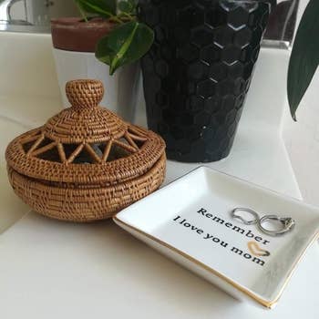 Promising review: "Got this as a gift for my mom. It’s perfect for the sink area to set your rings when doing skincare or washing your hands. She loves when I get her gifts related to her being my mom. I like to think when she sees the dish, it reminds her of our bond. Great gift:)"" —Rachel