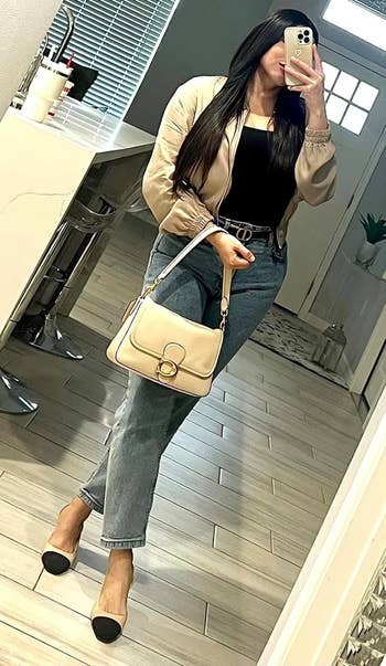 Promising review: "Beyond cute and exactly like the picture. The straps are removable, and the bag is the perfect size to hold a phone, small wallet, keys, and some lip gloss. I love the gold hardware, and the quality feels great!" —Julia Hammermeister