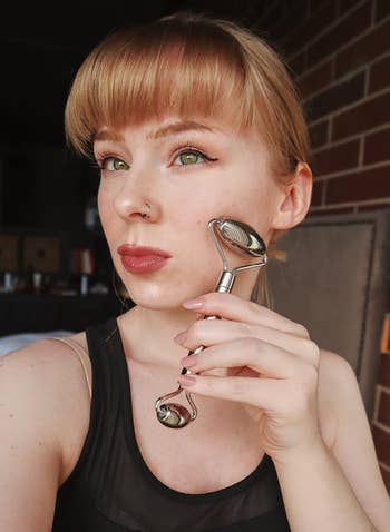 Promising review: "Great value for the money! When this arrived, I was shocked at how sturdy and heavy it was compared to other face rollers I have purchased. This has been a godsend for relieving puffiness and is high quality. I put it in the fridge before using it when I want some extra help as well. This is by far the highest-quality roller I have purchased...The greater weight to this really allows for the right pressure and makes the process a lot easier! " —EMY823