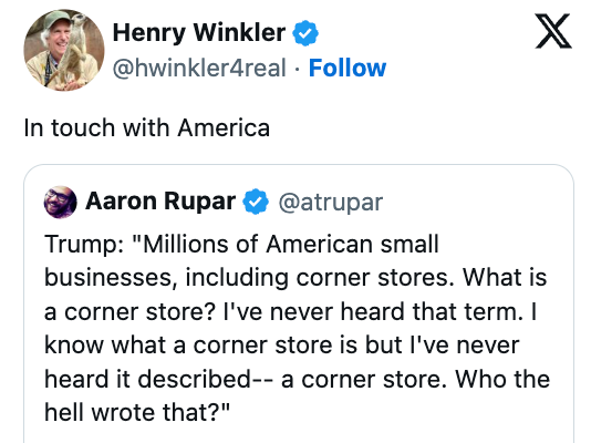 I'm an LA-based trending news writer covering health, politics, and internet culture. Trump: "Millions of American small businesses, including corner stores. What is a corner store? I've never heard that term. I know what a corner store is but I've never heard it described-- a corner store. Who the hell wrote that?" pic.twitter.com/meTSMHxdX0