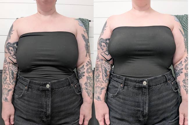 Promising review: "I’ve tried so many nipple covers over the years, and these are just in a league of their own! They stick and don’t move (sweat, clothes, moisturizer, etc. — nothing budges them), but then they peel off so easily. It’s magic. They are completely seamless, and my husband (without prompting) said they looked like a second skin. I’ve got quite 'triangular' boobs, and they completely mold to the shape and look like I just have no nipples lol. Only when I’m suuuuuper cold does any level of nipple start to show through, and even then, it’s minimal. They’re more pricey than others I’ve bought before, but so worth it. The others were one-and-done — these have held up through multiple wears and are still in perfect condition. Will repurchase them as soon as they wear out, without a doubt! No more bras!" —Alison
