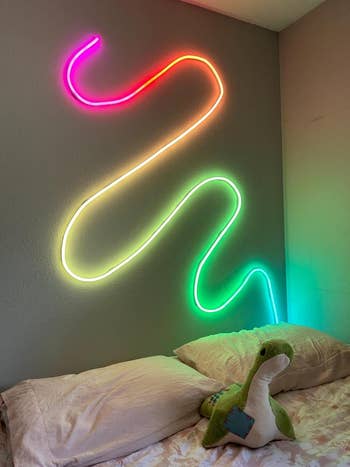 "I'll probably come back for this improved model eventually, which is made of even more flexible, softer materials and has improved lighting effects and upgraded bend clips. Plus, they now only offer this light in 9- and 16-foot lengths, which totally makes sense — mine is the old 6-foot version that they don't even sell anymore, probably because it's not quite long enough to make elaborate shapes with. You might not think you need that much length, but once you start creating waves and shapes on your wall, you'll realize it's very much needed to get the full effect!"