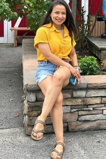 Promising review: "It’s true, these are more comfortable than Birkenstocks. I will be buying more of these they are extremely comfortable right out of the box, unlike Birkenstocks that take several weeks to break in. The footbed is soft and cushy; even on your heels it has a cushion. I do not know if they will last as long in Birkenstocks but for the price you can’t beat it." —Ashley