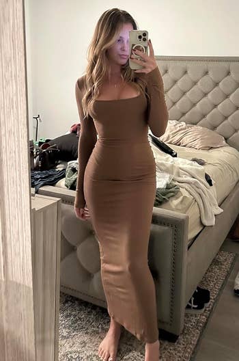 Promising review: "I’d been looking for a Skims alternative — I have the Skims dress, love it, and wanted it another color. Ordered a size large which is my normal size and it fit perfectly! I’m so very happy with my purchase! Literally half the price of Skims and it's identical! If you’ve tried the Skims dress, go ahead and order, you won’t be disappointed!" —Savvychique
