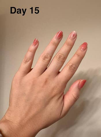Promising review: "These looked great and I got some compliments. I didn’t have any issues with them lifting as I have had with other brands. I hate the feeling of running my hands through my hair and then pulling out a few strands that got stuck in my nail sticker. I wore these for about 2.5 weeks. The only reason I took them off was that my nail had grown out so much. The nail strips are awesome! Buy them!! I have already ordered another set and am converting from my old brand to these!" —Holly M.