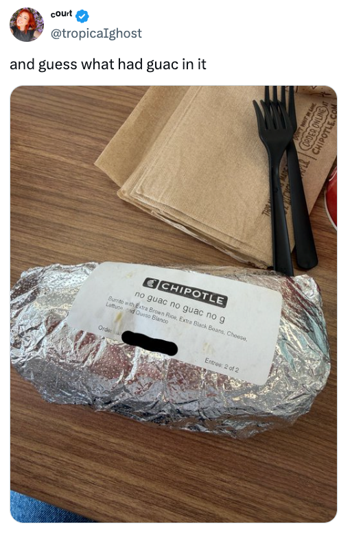 That’s me: first name “No,” last name “Guac.” As a Resident Writer here at BuzzFeed, I cover topics like politics, weird history, tech, trending viral stories, and other various corners of the internet. Editor's Note: While we can't endorse what X has become, we can bring you the fun moments that still exist there, curated and free of the surrounding chaos. “I’m Almost 40, WTF”: Sorry, Sorry, Sorry, But I Simply CANNOT Stop Laughing At These 37 Hysterical Fails From Last Week “He Showed Me A F—king NUDE”: I’m So, So Sorry, But I Just CANNOT Stop Laughing At These 39 Hilarious Fails From Last Week "We Had To Carry My 3-Year-Old Out": I Laughed So Hard At These 37 Hysterical Fails From Last Week, I Am For Sure Going STRAIGHT To The Bad Place