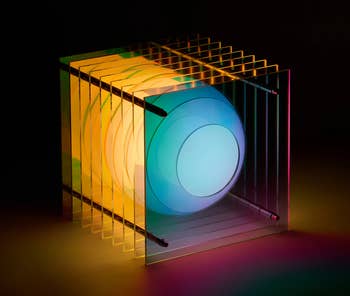 Promising review: "If you are on the fence about buying this unique lamp, go for it! It arrived beautifully packaged and contained white gloves for handling. It’s really funky and creates a distinct ambiance that shouts, “I take design risks and I’m good at it.” I also liked the orange and white lamp, and it seemed “safer,” but I noticed the blue and pink first, and I thought that life is too short to be conservative. I am contemplating buying the orange and white for another area of my home." —Jaqueline D.