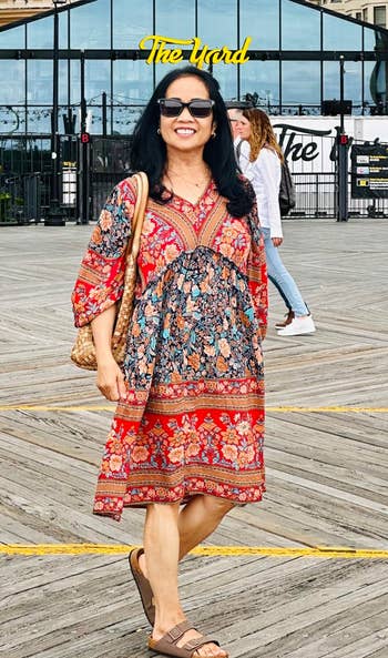 Promising review: "This dress is so beautiful, and I get SO many compliments every single time I wear it. Like, people stop in their cars in traffic to let me know how beautiful this dress is. It’s appropriate for work and is a great length. The colors are so vibrant and beautiful." —KA