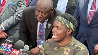 Acree is then seen handcuffed and seated on the ground as he is taken into custody.